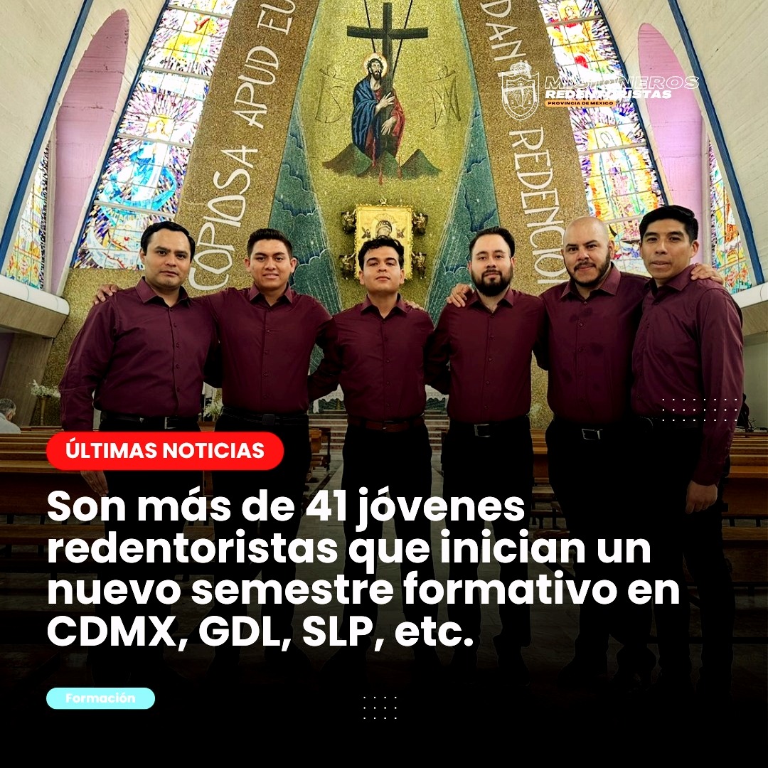 Image Caption8. Servicio, Reynosa y San Luis Potosí More Vocations to Our Congregation1. Preparatory, San Luis Potosí12 young people carry out their higher medium level studies for two years at the Latin American Institute, accompanied by the P. Alfonso Torres, CSSR. and Junior Julio Holguín, CSsR. 2. Introductory, San Luis PotosíFor a year 8 young people get to know each other, make community and above all prepare for university studies, accompanied by the P. Alfonso Torres, CSSR. and Junior Julio Holguín, CSsR.3. Senior aspirants Mexico CityDuring a semester 6 young people with college studies live Redemptive spirituality accompanied by the PP. Manuel Chavez, CSsR and Patrick Keyes, CSsR.4. Applied, GuadalajaraBesides living under the Redemptorist charisma, they focus on philosophical studies 3 young people accompanied by the PP. Jose Guadalupe Nazarín, CSsR. and Carlos Jimenez, CSsR.5. Candidate for seniors, San Luis PotosíFor two years, 4 young people continue their studies of philosophy and theology online at the Iberoamericana University, accompanied by the P. Aaron Moreno, CSsR.6. Novice Conference, Tlalpizahuac, Edo. MexicoDeepening his so-called missionary for one year, five young people of whom one belongs to our province are accompanied by Hon. Tito Lopez, CSsR. the PP's. Javier Moran, CSsR and Matt Allman, CSsR.7. Juniorado, Mexico CityFor four years they continue their theology studies at the Iberoamericana University, 3 young people are accompanied by the P. Roberto Morales, CSsR.8. Service, Reynosa and San Luis PotosíThey are 4 enthusiastic young people having a deeper experience in the mission field, the duration is six months and they are accompanied by the superiors of those communities.We thank you for your prayers and unconditional support, may the Redeemer continue to guide us.